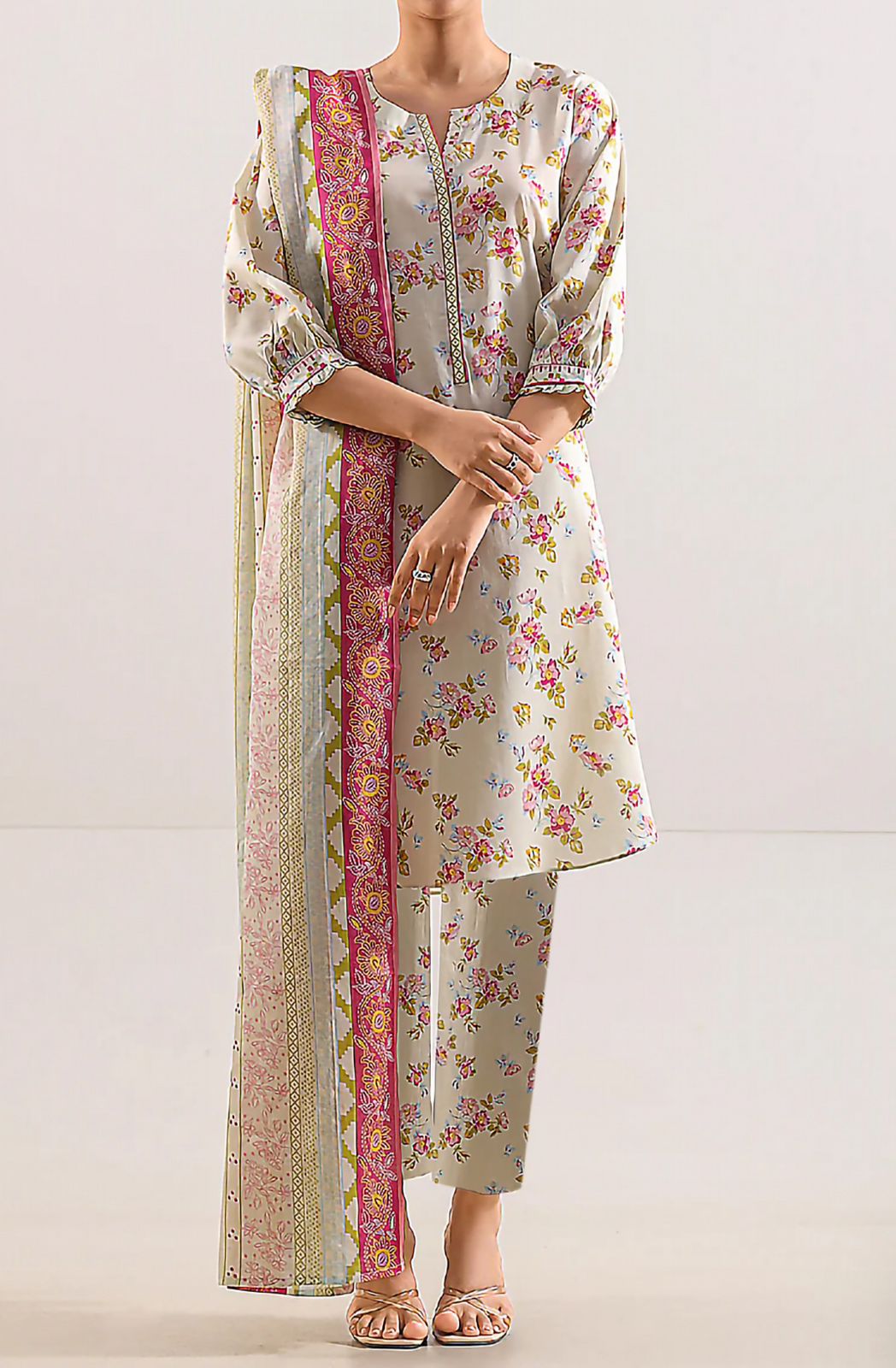 Comfort meets cultural charm in this 3-piece printed khaddar suit perfect for vibrant winter style.